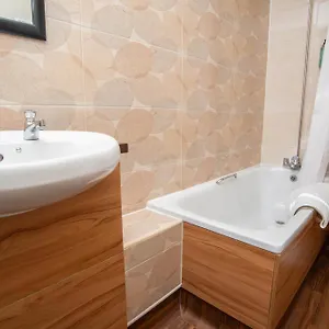 Guests can use a tub, along with a hairdryer and towels.